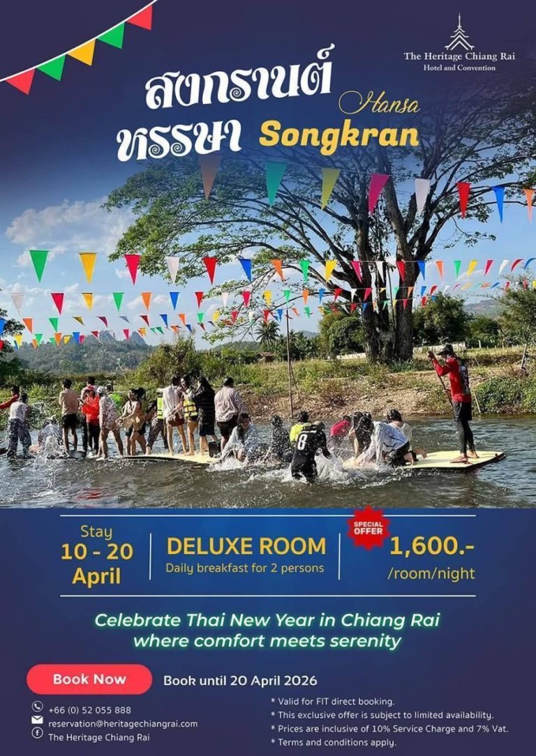 โรงแรมเฮอริเทจ เชียงราย โฮเทล แอนด์ คอนเวนชั่นชวนสัมผัสสงกรานต์เมืองเหนือ พักหรู เริ่มต้นเพียง 1,600 บาท พร้อมอาหารเช้า