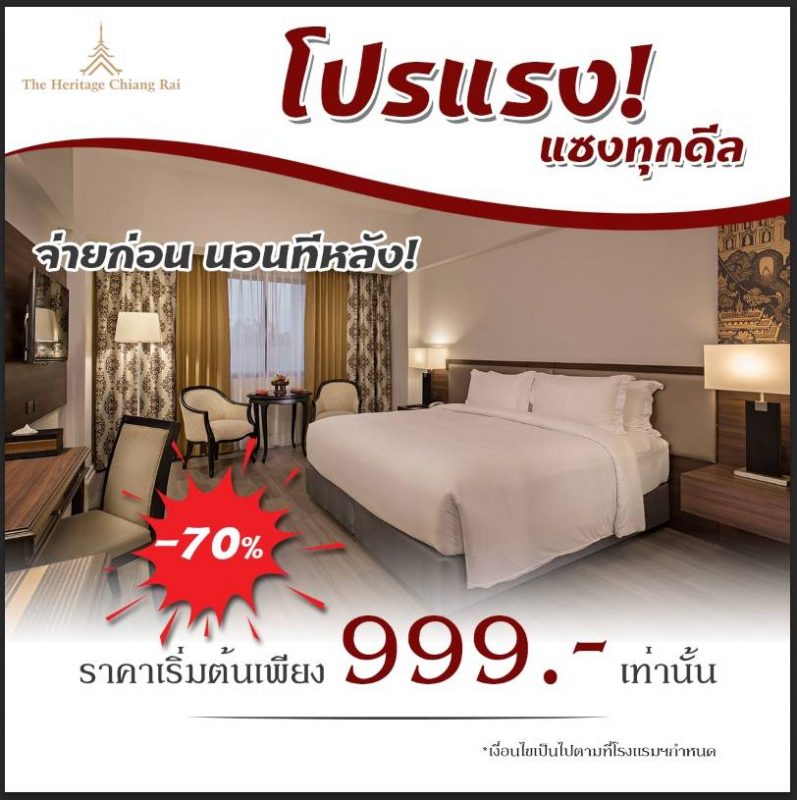 โรงแรมขอเสนอโปรจ่ายก่อน นอนทีหลัง! ในราคาสุดคุ้มลดสูงสุด 70% สำหรับที่พัก เพียง 299 สิทธิ์เท่านั้น! รายละเอียดแพ็กเกจ “โปรแรง แซงทุกดีล”