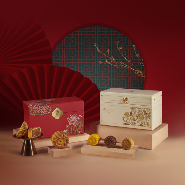 ความพิเศษของปีนี้ ทางห้องอาหารจีนพาโกด้า ไชนีส เรสเตอรองท์ มีกล่องมาให้เลือกถึง 2 แบบด้วยกันคือ “เดอะ มาร์คีส์ ” กล่องหนังสีงาช้างสุดหรูหรา ราคาเริ่มต้นอยู่ที่ 1,888 บาท และ “เดอะ คลาสสิก” กล่องสีแดง ราคาเริ่มต้นอยู่ที่ 999 บาท โดยทั้ง 2 แบบมาในดีไซน์รูปทรงหีบสมบัติสไตล์ร่วมสมัย พิมพ์ลวดลายดอกโบตั๋น สามารถบรรจุขนมไหว้พระจันทร์สูตรดั้งเดิมขนาด 150 กรัม จำนวน 4 ชิ้น หรือขนมสูตรซิกเนเจอร์ขนาด 50 กรัม จำนวน 6 ชิ้น อีกทั้งยังสามารถตกแต่งด้วยโลโก้ของบริษัทเพื่อมอบเป็นของขวัญที่ยอดเยี่ยมสำหรับมิตรภาพทางธุรกิจในช่วงเวลาอันเป็นมงคลนี้