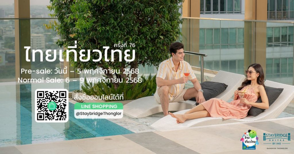 สามารถซื้อบัตรกำนัลได้แล้วตั้งแต่วันนี้ – 9 พฤศจิกายน 2568 ผ่านทางลิงก์ https://shop.line.me/@staybridgethonglor