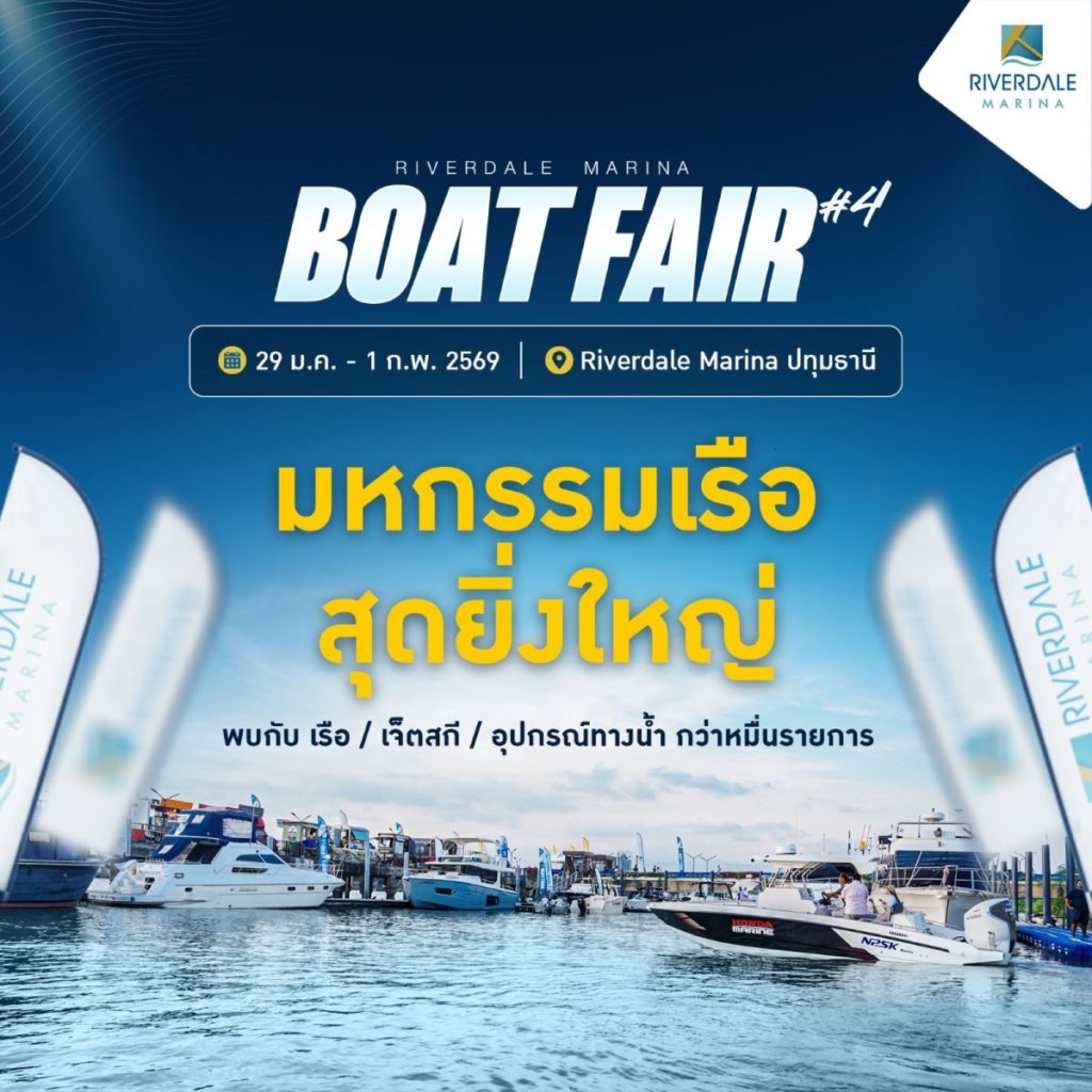 ห้ามพลาดมหกรรมงานเรือสุดยิ่งใหญ่ระดับประเทศ Riverdale Marina Inspired Boat Fair ครั้งที่ 4 ตั้งแต่วันที่ 29 มกราคม – 1 กุมภาพันธ์ 2569 ณ ริเวอร์เดล มารีน่า จ.ปทุมธานี