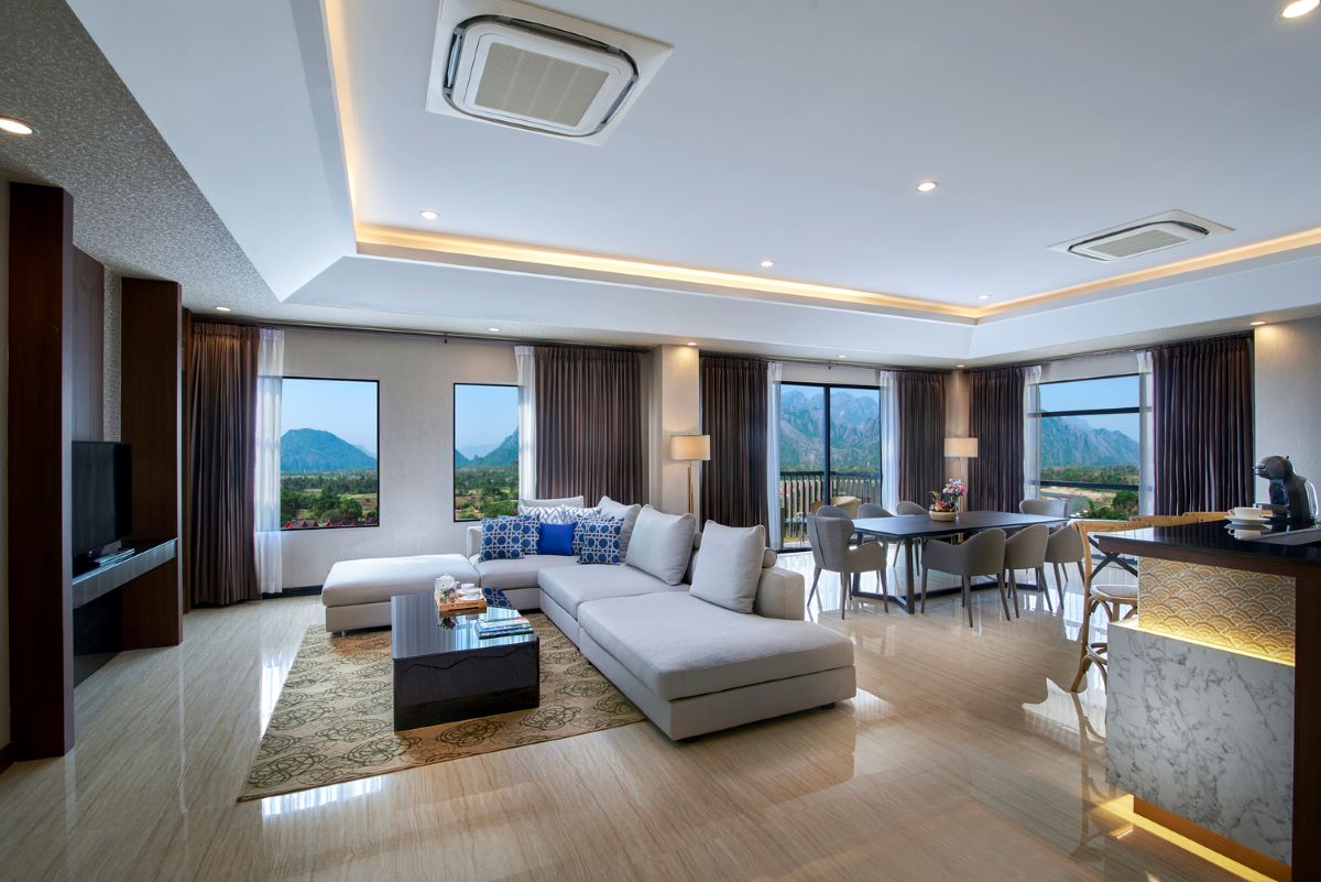 อมารี วังเวียง (Amari Vang Vieng) ที่นี่…ความสุขเกิดขึ้นได้ง่ายกว่าที่คิด เพียงเปิดประตูระเบียงห้องพักออกไป ปล่อยสายตาให้ไหลไปกับทิวเขาหินปูนและสายน้ำซอง ความสุขก็เกิดขึ้นได้อย่างง่ายดาย อมารี วังเวียง ตั้งอยู่บนทำเลริมน้ำที่เงียบสงบ แต่เดินทางสะดวก ใกล้เมืองและแหล่งท่องเที่ยว เหมาะทั้งกับการ “พักผ่อนนิ่งๆ” และการออกไปสนุกกับกิจกรรมกลางแจ้งตามสไตล์วังเวียง ห้องพักกว่า 160 ห้อง ที่ออกแบบในโทนร่วมสมัย ผสานงานหัตถศิลป์ลาวอย่างละเมียด โปร่งโล่งด้วยหน้าต่างบานสูง ให้ธรรมชาติกลายเป็นส่วนหนึ่งของการพักผ่อน พร้อมสระว่ายน้ำกลางแจ้งขนาดใหญ่ที่สุดในวังเวียง ที่เหมาะจะใช้เวลาช่วงเย็นเมื่อแสงอาทิตย์ค่อยๆ อ่อนลง