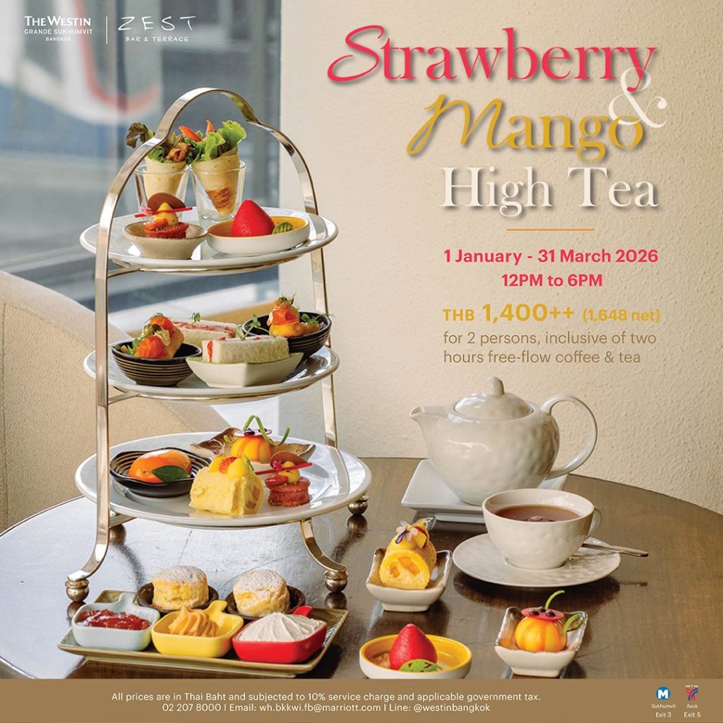 ต้อนรับปี 2569 ด้วยประสบการณ์อาฟเตอร์นูนทีในธีม สตรอว์เบอร์รีและมะม่วง ณ เซสท์ บาร์ แอนด์ เทอเรส ที่จะทำให้คุณผ่อนคลายไปกับช่วงเวลาอันแสนรื่นรมย์ยามบ่าย พร้อมจิบชาร้อนๆหรือกาแฟหอมกรุ่น เคล้าความสดชื่นของขนมรสผลไม้สีสันสดใส ได้ตั้งแต่วันที่ 1 มกราคม – 31 มีนาคม 2569