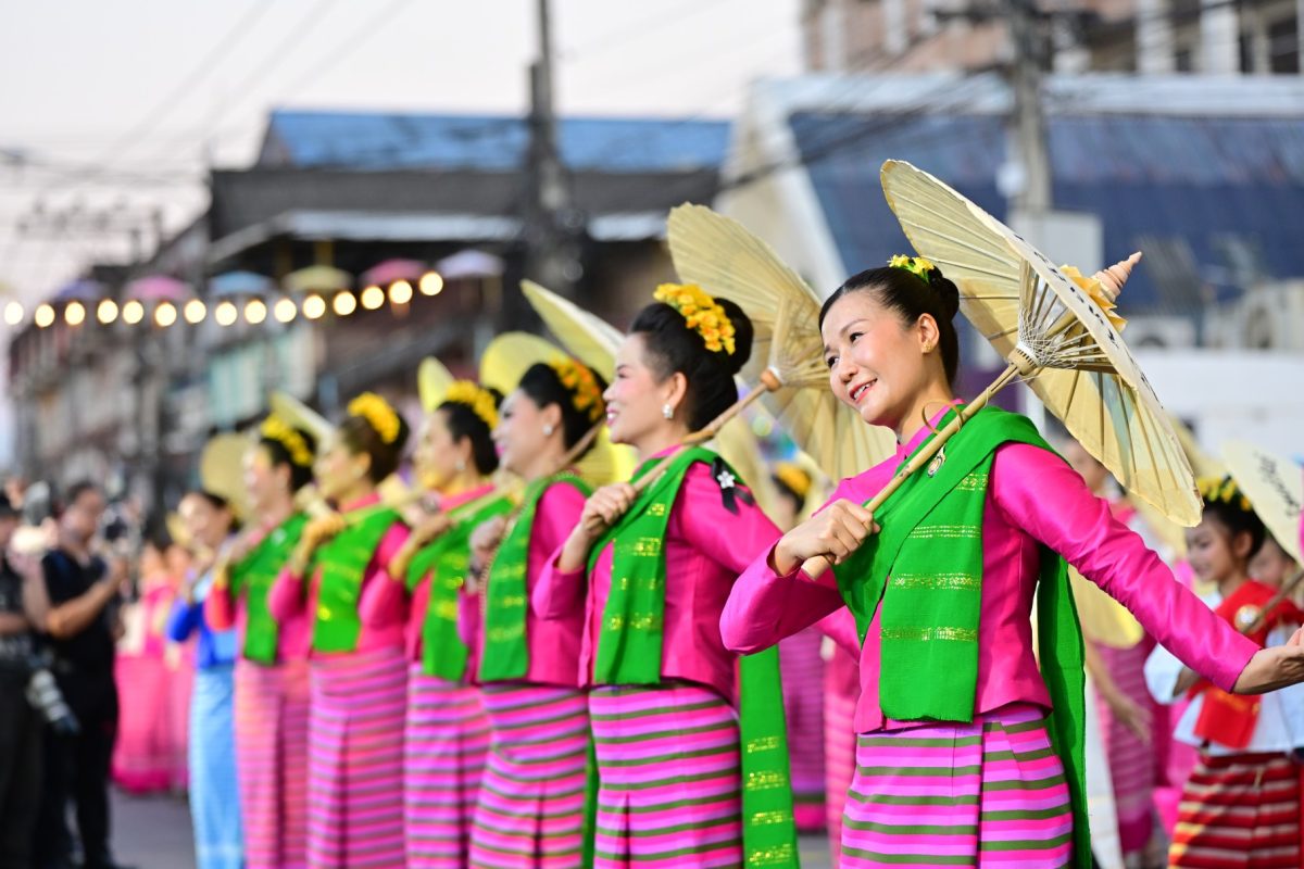 บรรยากาศวันเปิดงานเต็มไปด้วยสีสันและความประทับใจ เริ่มต้นด้วย การแสดงต้อนรับ จากสำนักงานวัฒนธรรมจังหวัดเชียงใหม่ ถ่ายทอดรากเหง้าและอัตลักษณ์ทางวัฒนธรรมของท้องถิ่น ขบวนแห่ทางวัฒนธรรมสุดตระการตา นำโดย ขบวนร่มสร้างสรรค์ มหัศจรรย์สีสันนานาชาติ ขบวนถวายความอาลัยและน้มรำลึกในพระมหากรุณาธิคุณฯ สมเด็จพระนางเจ้าสิริกิติ์พระบรมราชินีนาถ พระบรมราชชนนีพันปีหลวง ขบวนรถและริ้วขบวนประดับร่มบ่อสร้าง สร้างภาพจำอันงดงามให้กับผู้ร่วมงานและนักท่องเที่ยว ต่อด้วยการแสดงพิธีเปิดงานที่ถ่ายทอดความงดงามของภูมิปัญญาท้องถิ่นและศิลปวัฒนธรรมล้านนา ที่ผสานความดั้งเดิมเข้ากับความทันสมัย สร้างอารมณ์ท่องเที่ยวเชิงไลฟ์สไตล์และแรงบันดาลใจใหม่ให้กับงานหัตถศิลป์ไทย
