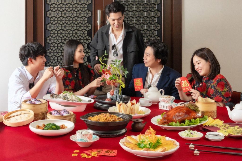เริ่มต้นมื้อพิเศษด้วย เป็ดปักกิ่ง สัญลักษณ์แห่งโชคลาภและความอุดมสมบูรณ์ ตามด้วย ซุปไก่ตุ๋นมะพร้าวนครปฐม คัดสรรพิเศษพร้อมเคี่ยวอย่างพิถีพิถัน กุ้งทอดทรงลิ้นจี่ สัญลักษณ์แห่งความเจริญรุ่งเรือง มั่งคั่ง ปูอบสไตล์ฮ่องกงสูตรคลาสสิก รสเข้มข้นพร้อมเนื้อปูคัดสรรอย่างดี ตามด้วย ปลาเก๋านึ่งซีอิ๊ว รสกลมกล่อม สื่อถึงความอุดมสมบูรณ์และความสำเร็จ จับคู่กับ เป๋าฮื้อตุ๋นสูตรพิเศษ อันเป็นคำอวยพรแห่งเส้นทางชีวิตที่ราบรื่นและความมั่งคั่งยั่งยืน เฉลิมฉลองอย่างต่อเนื่องด้วย เมนูหมูสามชั้นตุ๋นเนื้อนุ่มหอมกลิ่นยูสุ และ ข้าวผัดกุนเชียงสูตรต้นตำรับ ก่อนปิดท้ายความอร่อยอย่างงดงามด้วยขนมหวานสุดมงคล บัวลอยงาดำในซุปถั่วแดง สัญลักษณ์แห่งความสามัคคี ความสุข และความหวานชื่นของชีวิต