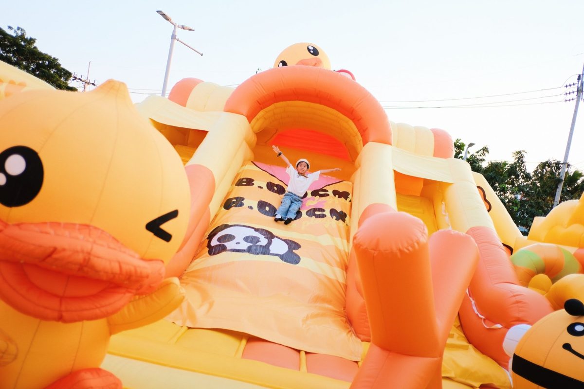 ภายในงาน เต็มอิ่มด้วยกิจกรรมสุดไฮไลต์ ที่ออกแบบมาเพื่อเติมเต็มความสนุกทุกช่วงวัย เริ่มต้นกับ “3 Giant B.DuckBouncy Castles” บ้านลมยักษ์ 3 หลังดีไซน์สุดคิวต์ใน ธีม B.Duck ให้เด็กๆ ได้เด้งดึ๋งอย่างจุใจ พร้อม “B.Duck เป่าลมขนาดยักษ์สูงถึง 6 เมตร” ให้ถ่ายภาพเช็กอินแบบเต็มเฟรม เพิ่มดีกรีความสนุกด้วย Carnival Games Booths เกมบูธสไตล์คาร์นิวัลลุ้นรางวัลสุดมันส์ ส่วนสายช้อปต้องไม่พลาด “B.Duck Pop-up Store” ที่ขนสินค้า Limited Edition สุดน่ารักมาให้เลือกช้อปแบบเอ็กซ์คลูซีฟ พร้อมเติมความอร่อย ทั้งไอศกรีม B.Duck สุดน่ารักที่กินแล้วต้องยิ้มตาม รวมถึงเมนูอร่อยอีกมากมายที่พร้อมเสิร์ฟความสุขตลอดทั้งงาน