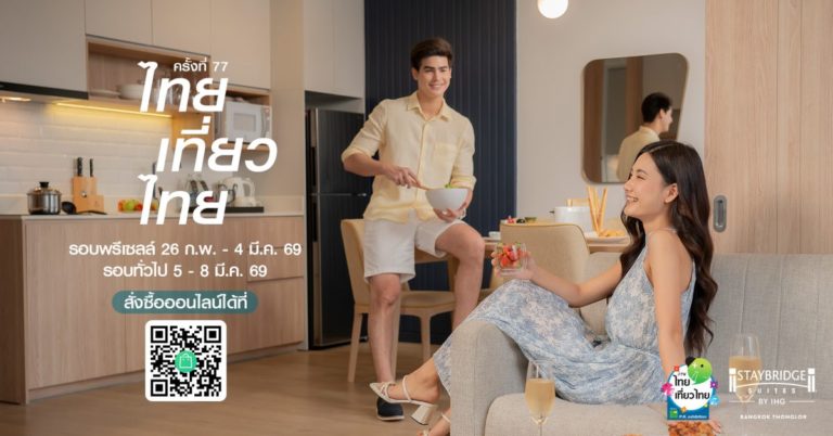 เติมเต็มทุกช่วงเวลาให้พิเศษยิ่งขึ้น สำหรับคุณและคนที่คุณรัก ด้วยข้อเสนอสุดคุ้ม เฉพาะงานไทยเที่ยวไทย ครั้งที่ 77 จากโรงแรมสเตย์บริดจ์ สวีท แบงค็อก ทองหล่อ ระยะเวลาจำหน่ายรอบ Pre-Sale: วันนี้ – 4